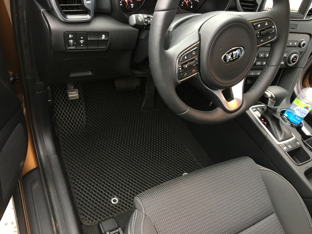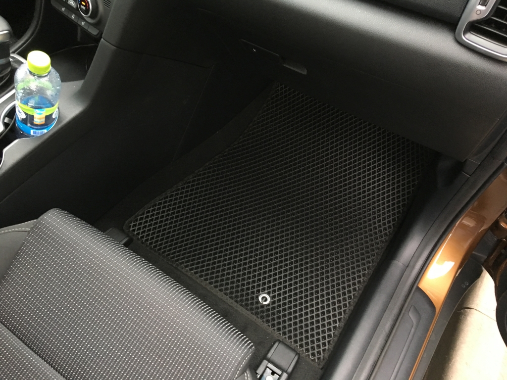 EVA коврики для автомобиля Kia Sportage IV 2015 -наст. время — это лучший выбор. Покрытие из этого ячеистого полимерного материала покупают сотни автолюбителей. Коврики из ЭВА долговечные, прочные, красивые. Сроки службы изделий — от 5 лет. Они не выделяют вредных веществ, ничем не пахнут. Коврики защищают пол автомобиля от грязи и влаги, а салон — от лишней пыли.