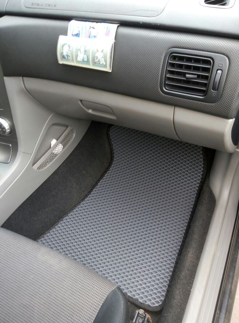 EVA коврики для автомобиля Subaru Forester II (правый руль) 2002 - 2008 — это лучший выбор. Покрытие из этого ячеистого полимерного материала покупают сотни автолюбителей. Коврики из ЭВА долговечные, прочные, красивые. Сроки службы изделий — от 5 лет. Они не выделяют вредных веществ, ничем не пахнут. Коврики защищают пол автомобиля от грязи и влаги, а салон — от лишней пыли.